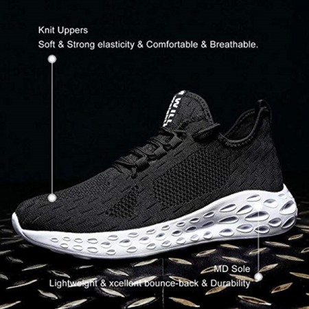Men's Fashion Sneakers Tennis Work Shoes Slip Resistant Athletic Sports Running Casual Walking Gym Workout Shoes Black-White